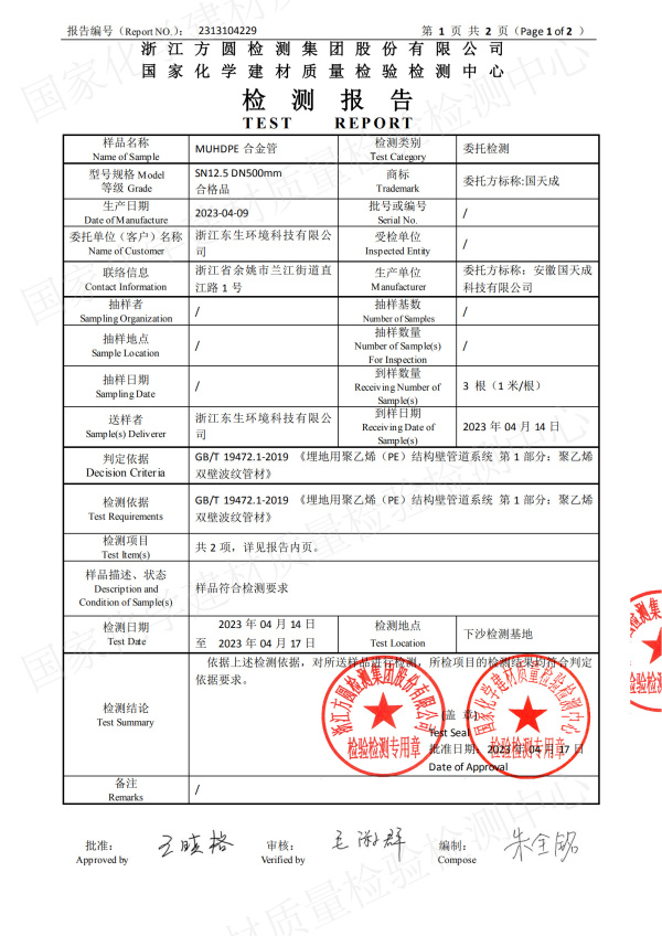 MUHDPE合金波纹管