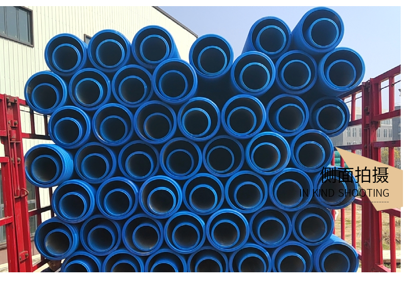 HDPE-H可视直壁耐压管是外壁为波纹状、内壁为光滑平壁状的一种双壁波纹、没有扩口连接头、大小匀称的直壁管材;采用可视套筒接头双胶圈柔性连接,有效解决了扩口承插连接方式的管材,连接处漏水、强度低、耐压低、后期维护成本高、有效长度不足五大核心问题。由于扩口承插连接没有将两根管材固定,连接后连接处一受压就变形漏水、沟槽开挖不平整、承插扩口薄承插后胶圈受挤压造成扩口变形、地质沉降、 管材挠曲等都会造成漏水问题,城市道路-修再修还是没有解决内涝问题,就是因为排水排污管道的扩口承插的连接方式漏水了。HDPE-H可视直壁耐压管采用卡扣可视套筒接头,有效解决了因沉降、震动、挠曲等带来的连接松脱漏水问题。