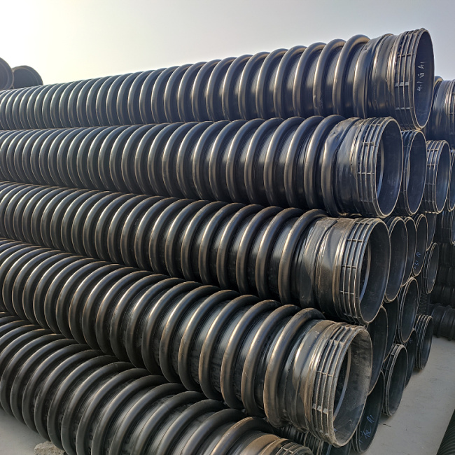 本公司生产的高密度聚乙烯缠绕增强结构壁管(B型),俗称克拉管,是-种新型异形结构壁管材,采用高密度聚乙烯热缠绕成型工艺制成。产品以高密度聚乙烯树脂(HDPE)为原料,以PP或PE波纹管做辅助支撑管,采用热缠绕成型工艺生产的高密度聚乙烯大口径缠绕增强管,国家标准为GB/T 19472.2-2004B型结构管壁,该产品是一种环保安全型产品,具有重量轻、承压能力强、接口质量高、寿命长、耐腐蚀、环刚度高、施工方便等优点,广泛应用于城市供水、排水、远距离输水及农田水利灌溉等工程。
