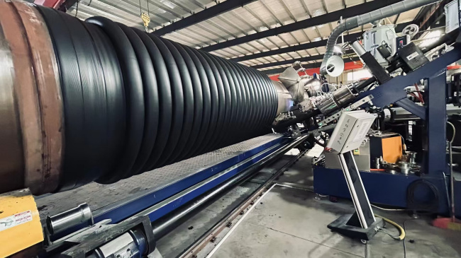 本公司生产的高密度聚乙烯缠绕增强结构壁管(B型),俗称克拉管,是-种新型异形结构壁管材,采用高密度聚乙烯热缠绕成型工艺制成。产品以高密度聚乙烯树脂(HDPE)为原料,以PP或PE波纹管做辅助支撑管,采用热缠绕成型工艺生产的高密度聚乙烯大口径缠绕增强管,国家标准为GB/T 19472.2-2004B型结构管壁,该产品是一种环保安全型产品,具有重量轻、承压能力强、接口质量高、寿命长、耐腐蚀、环刚度高、施工方便等优点,广泛应用于城市供水、排水、远距离输水及农田水利灌溉等工程。