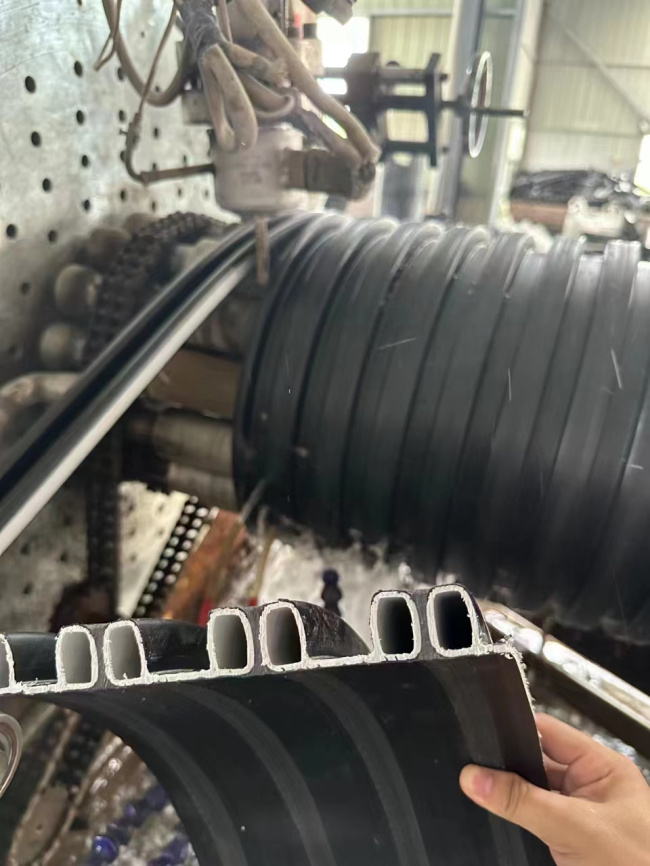 内肋增强聚乙烯螺旋波纹管是目前市场上最新研发出来的全塑内肋增强缠绕管。此管材以高密度聚乙烯(HDPE)为原料,管材具有大的外表面积,形成管土同抗压。熔接效果好,增强缝的拉伸强度。内肋结构,有利于提高环刚度的稳定性。目前国内厂商可生产DN200 2000m各规格管材,管材生产长度为6米、9米、12米。