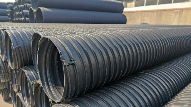 聚乙烯塑钢缠绕管(SRWPE)是由钢塑复合的异型带材经螺旋缠绕焊接(搭接面上挤出焊接)制成,其内壁光滑平整,规格为DN200-DN3000mm。该种管材具有耐腐蚀、质量轻、安装简便、通流量大、寿命长(50年)等优点,可替代高能耗材质(水泥、铸铁、陶瓷等)制作的管材,属环保型绿色产品。