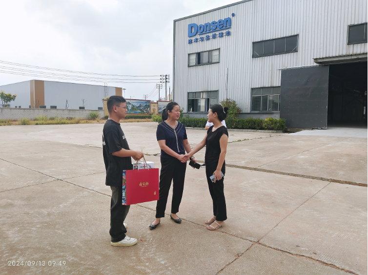 2024年9月13日上午,新干县委统战部常委副部长、台办主任曾发梅,新干县委统战部副部长、侨联主席邓建辉到我公司送上中秋节祝福及慰问。